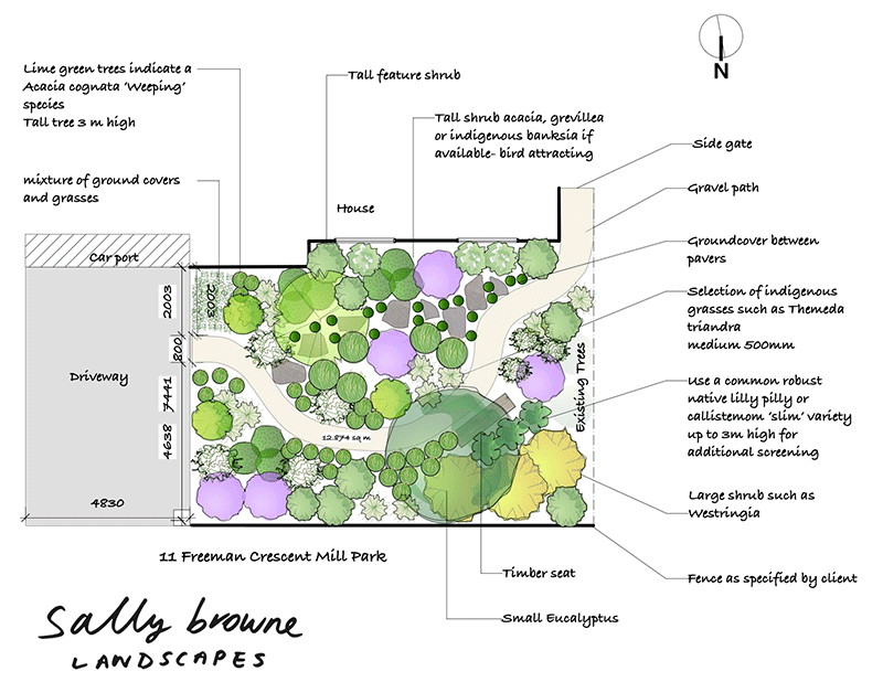 A garden designed for a gardener and lover of native plants. The design was centred around the clients wanting to construct and plant the garden themselves, requiring a simple and easy to follow plan and planting guide. This garden design was completed remotely during the Melbourne lockdown in the Covid pandemic.
