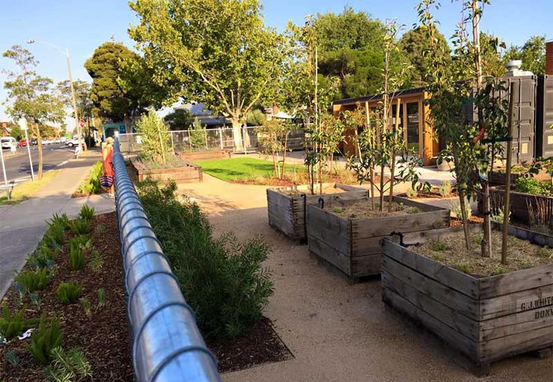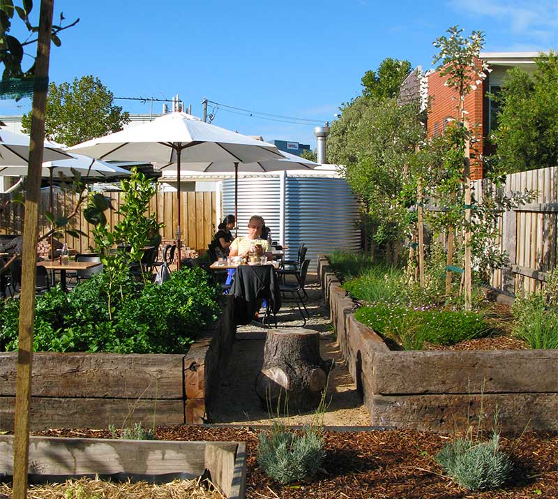 Sally Browne Landscapes had the exciting opportunity to collaborate and design a kitchen garden in the heart of Footscray based around a reconditioned shipping container café which faced North on a residential street